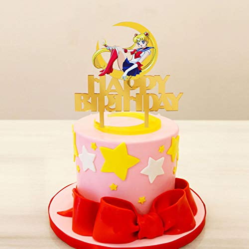 Gold Acrylic Sailor Moon Happy Birthday Cake Topper Pretty Guardian Theme Birthday Party Decoration Suppliers Walmart Com